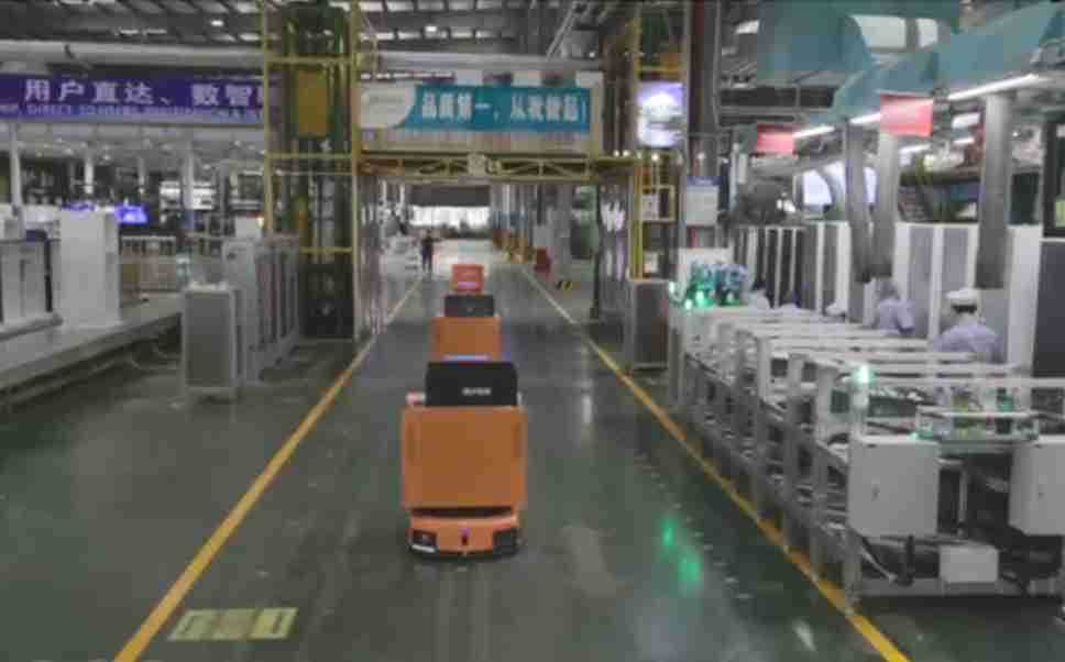 为车载冰箱物流配送打造的智能解决方案,,,,包含产中物流通过潜伏举升AMR搬运至线边,,,,产后成品物流智能仓储,,流程包含产中物流智能齐套入库,,,线边安灯叫料AMR智能配送至线边,,,,成品入库、、、出库,,,通过无人堆高车机器人,,,智能仓储管理替代人工作业管理,,,,实现更高存储、、、更高效率、、、更具柔性化的解决方案。。。。